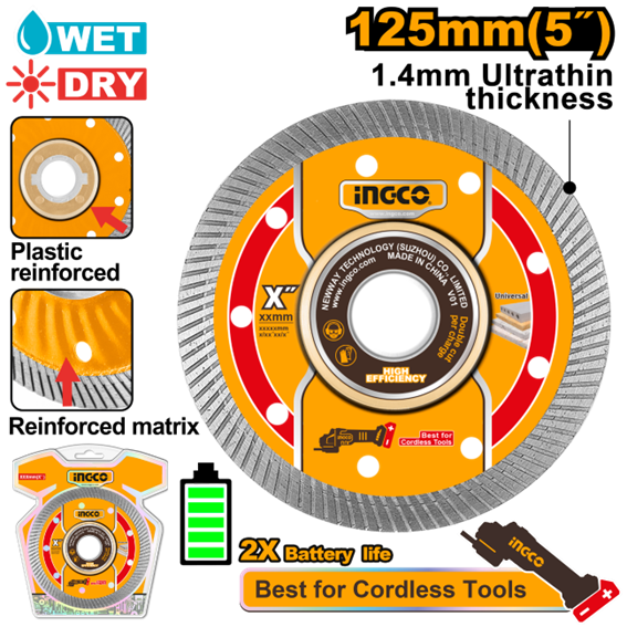 DISCO DIAMANTADO P/ESMERILHADEIRA 125MM INGCO DMD051251