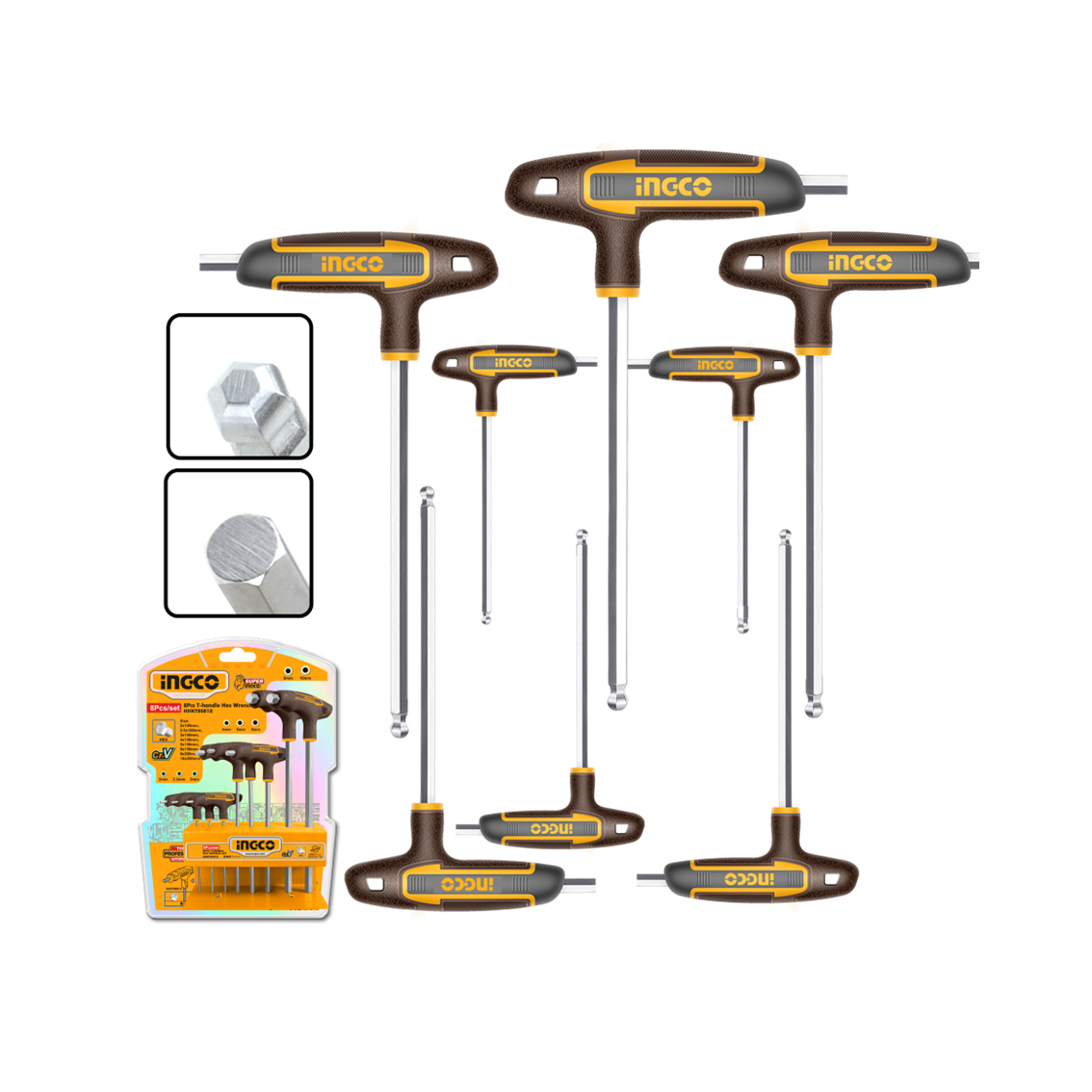 JOGO DE CHAVE TIPO TEE PONTA BOLA HEXAGONAL C/8PC INGCO HHKT80828